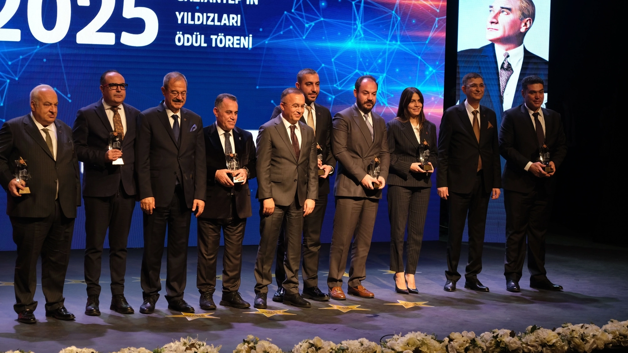 “2025 Gaziantep’in Yıldızları” Ödül Töreni’nde Gaziantep Valisi Sayın Kemal Ceber, BAŞAK Traktör adına ASKO Holding Kurumsal Sosyal Sorumluluk ve Pazarlamadan Sorumlu Yönetim Kurulu Üyesi Sayın Elif Konukoğlu Kara’ya ödül verdi. Deva Partisi Gaziantep Milletvekili Sayın Ertuğrul Kaya da MST İş Makinaları adına ASKO Holding Kıdemli İcra Kurulu Üyesi Sayın Özalp Kibar’a ödül verdi.